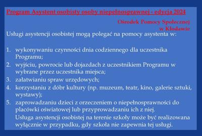 Nabór wniosków - Program Asystent osobisty osoby niepełnosprawnej - edycja 2024 Ośrodek Pomocy Społecznej w Kłodawie ogłasza nabór wniosków do realizacji Programu „Asystent Osobisty Osoby Niepełnosprawnej” – edycja 2024 finansowanego ze środków...
